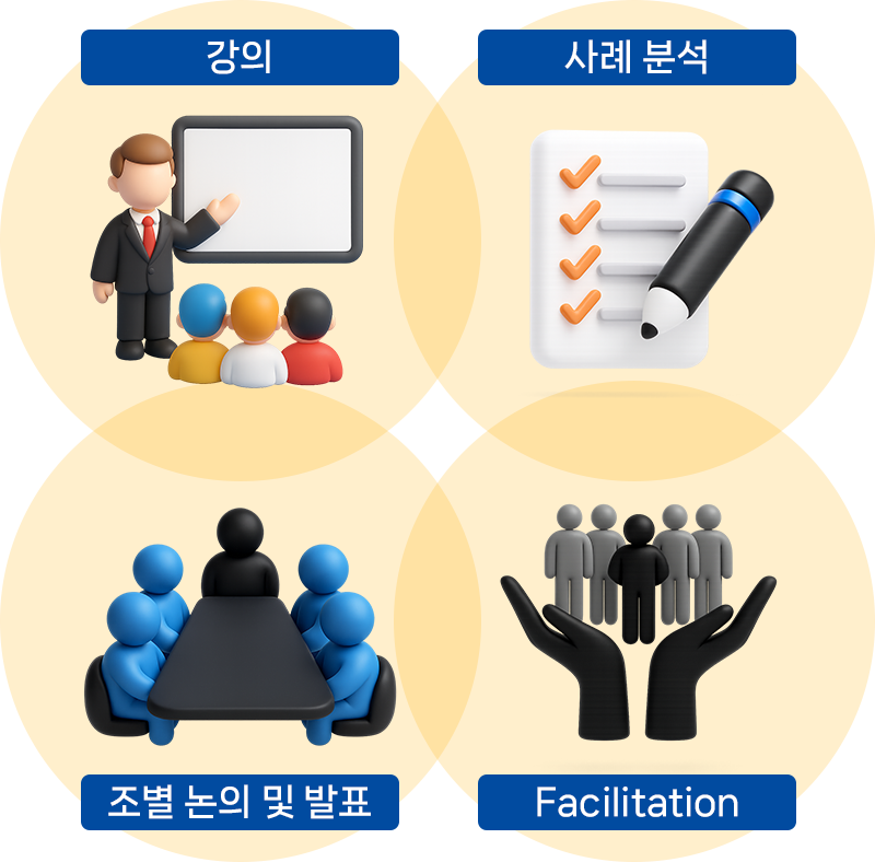 · 교육 방식: 사례 중심 강의, 논의 및 발표 중심 참여형 워크숍