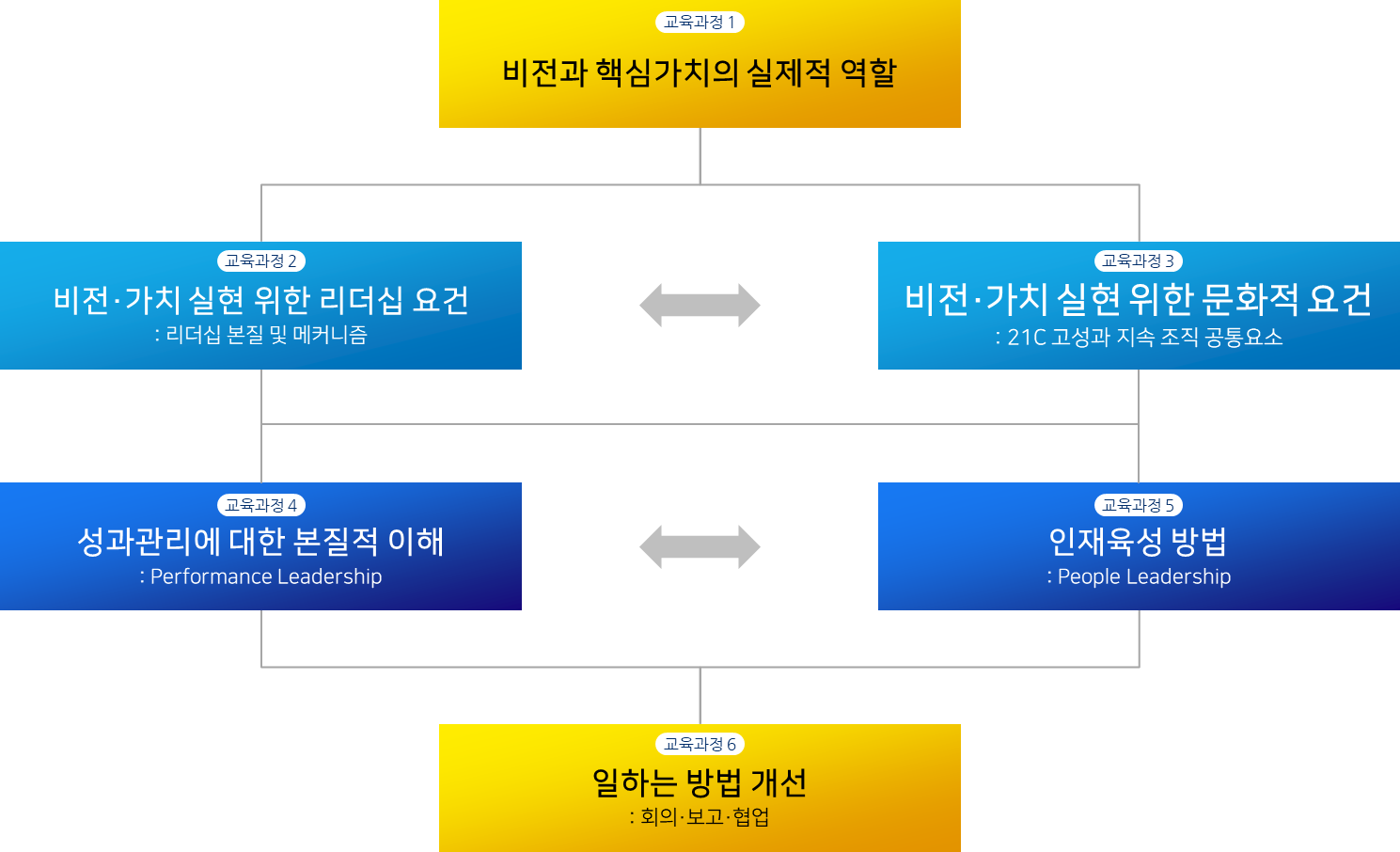 리더십 교육을 통해 리더급 직원 대상 바람직한 리더십 발현을 위한 필수 지식과 스킬 체득을 지원하고, 리더들의 실질적 의식과 행동 변화를 촉진함
