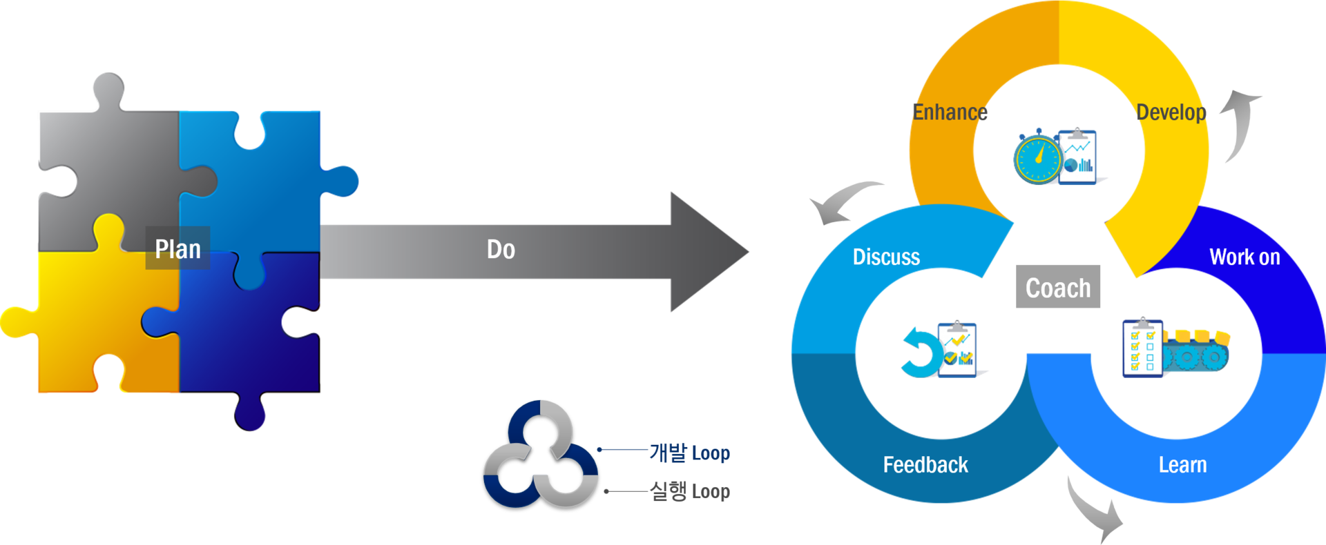 제도실행은 제도수립을 아우르고 있으며, ‘코칭’으로 구동됩니다.